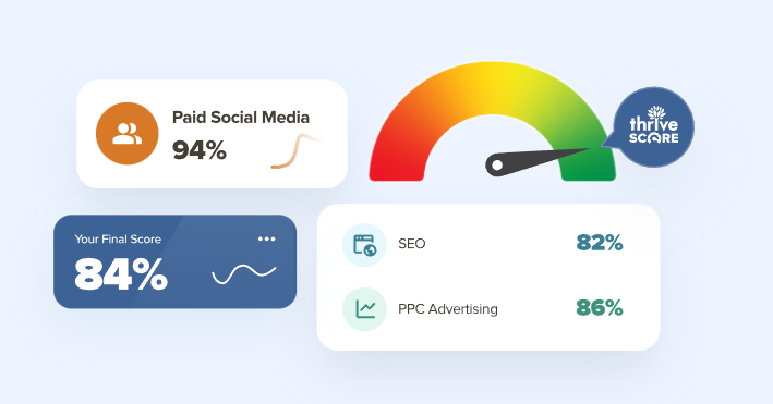 The Thrive Score is a comprehensive evaluation process designed to assess our client's digital marketing efforts. We utilize a scoring matrix with over 150 factors that gauge the effectiveness of the client's current approach, providing insights into their strengths and highlighting opportunities for improvement.